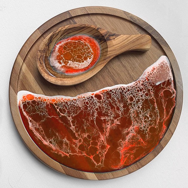 Uwaga – Zdjęcia mogą odbiegać kolorystycznie od finalnego wyniku wybarwienia ze względu na ustawienia rozdzielczości monitora i naświetlenia a także od koloru użytej żywicy epoksydowej. Próbki kolorystyczne z katalogu wykonywane na krystalicznie bezbarwnej żywicy Crystalline 940.