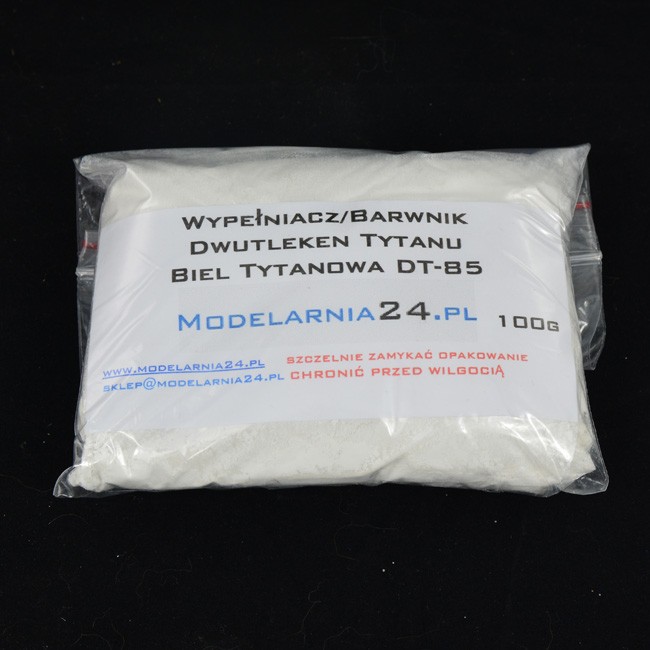 Przedmiotem oferty jest DT-85 dwutlenek tytanu (TiO2) zwany również bielą tytanową. Biel tytanowa jest szeroko stosowana jako biały pigment w przemyśle farbiarskim i lakierniczym oraz jako wypełnienie i/lub barwnik w żywicach. Związek ten charakteryzuje wysoka jasność oraz bardzo wysoki współczynnik odbicia światła, dlatego jako dodatek występuje często w farbach przeznaczonych do pokrycia dachów lub innych elementów które nie powinny się nagrzewać. Istotną zaletą TiO2 jest też absorpcja promieniowania ultrafioletowego (co zapewnia wysoką trwałość wyrobom zawierającym ten pigment) oraz nietoksyczność i przyjazność środowisku. Stosowany również w przemyśle metalurgicznym do produkcji elektrod, do produkcji papieru, wyrobów gumowych a także żywności (jako barwnik E171) oraz kosmetyków. Ze względu na swoje właściwości ochronne materiału przed szkodliwym wpływem światła słonecznego oraz pogody, jak i możliwość wybielania i krycia, biel tytanowa jest obecna właściwie w każdej dziedzinie współczesnego życia.