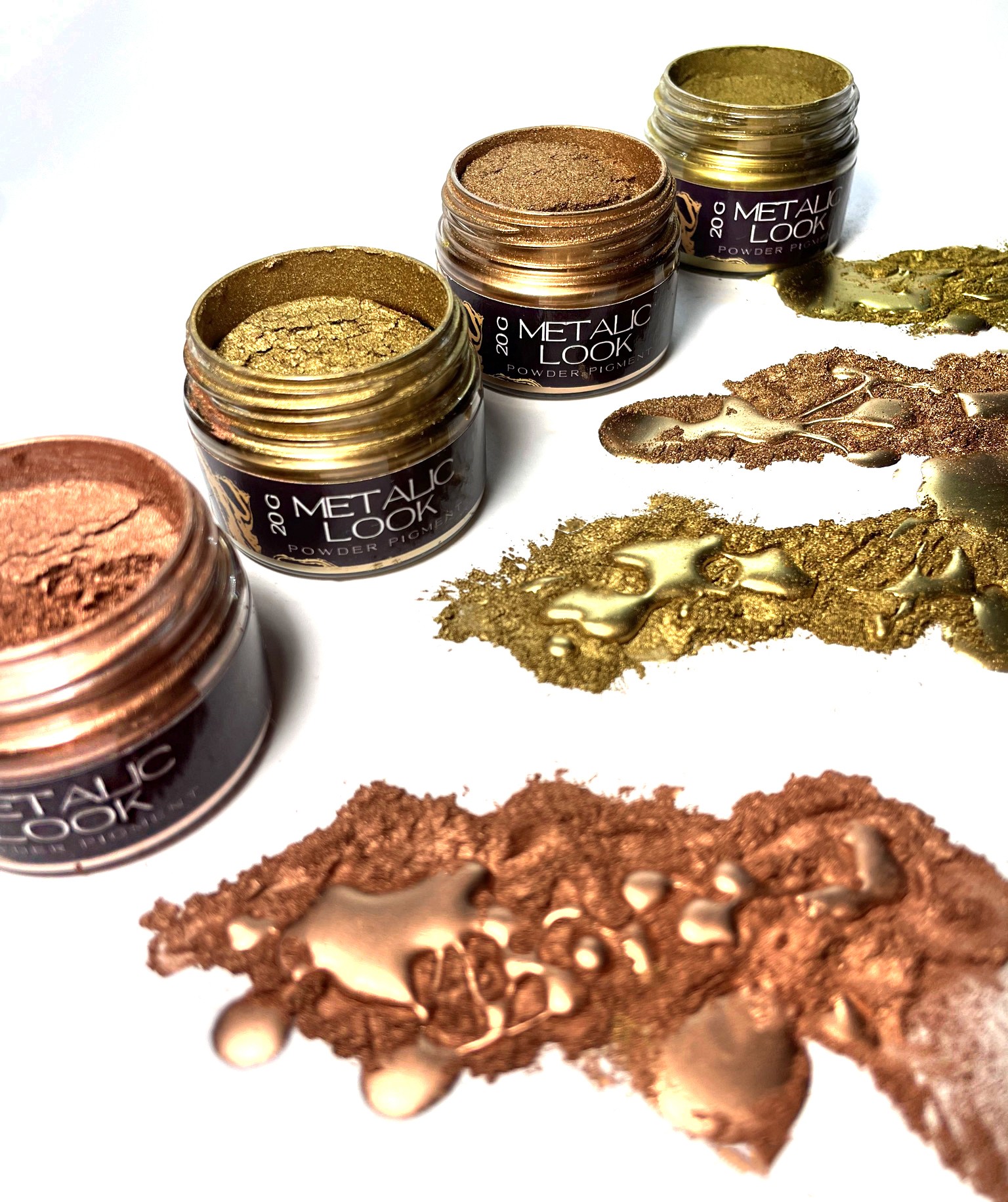 Pigmenty metaliczne wysokiej jakości bardzo drobny barwnik metaliczny w formie proszku, nazywany również “brąza” lub barwnikiem metalicznym pływającym. Po jego aplikacji uzyskuje się efekt metalicznie błyszczącej powłoki doskonale imitującej płatki złota lub szlagmetalu. Barwniki te możemy łączyć ze wszystkimi rodzajami żywic, farb, lakierów i wszelakich mediów