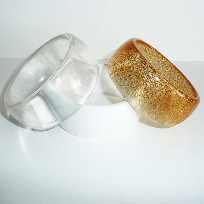 5. Odlewanie żywicy CLEAR ONE może odbywać się w specjalnych formach wykonanych z PEHD, PP czy PET, np. w wyniku odlewania elementów jubilerskich takich jak kaboszon, naszyjnik czy bransoleta w formach z tworzyw sztucznych często odlewy te nie wymagają dodatkowej obróbki polerskiej od strony formy. W przypadku zastosowania formy silikonowej należy stosować silikony addycyjne jak najbardziej twarde, odlew wykonany w silikonie ze względu na skurcz i kontakt z powietrzem posiada na powierzchni efekt skórki pomarańcza – aby uzyskać wysoki połysk powierzchni należy przeszlifować powierzchnię papierem ściernym wodnym 400, 800, 1500 a następnie wypolerować za pomocą ogólnie dostępnych past polerskich samochodowych. W wyniku tych zabiegów uzyskujemy powierzchnię z „połyskiem lustra” W przypadku wystąpienia lokalnej lepkości ze względu na inhibicję tlenową przed polerowaniem powierzchnię należy przetrzeć acetonem.
