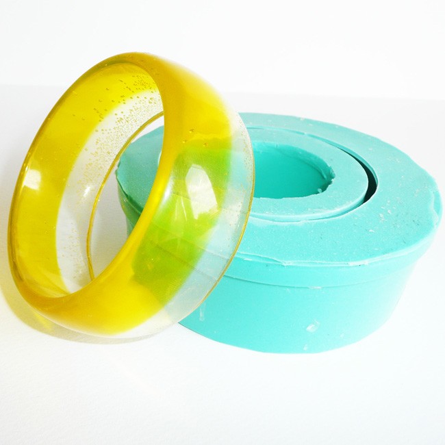 4. Następnie zalewamy formę, mieszanina posiada stosunkowo niską lepkość dlatego bardzo łatwo jest odwzorować skomplikowane kształty odlewów. Zaleca się aby odlewy nie posiadały większej masy jak 150-200 gram gdyż może nastąpić przegrzanie odlewu i zmianę barwy. Rozformowanie zależy od temperatury otoczenia nie mniej jednak nie wcześniej jak 24-48 godzin po zalaniu.