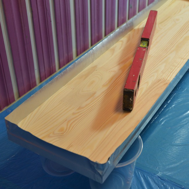 4. Po wylaniu żywica ma tendencję do samo poziomowania się na powierzchni nie mniej jednak nie jednokrotnie niezbędne jest użycie plastikowej szpatułki w celu równomiernego rozprowadzenia. Po pokryciu całej powierzchni czekamy chwilkę w celu ostatecznego samo poziomowania się powłoki żywicznej. Bardzo ważnym aspektem jest wręcz idealne wypoziomowanie elementu na który nanosimy kompozycję żywiczną, nawet minimalne uchybienia w tym obszarze będą skutkować tym, że żywica będzie nam spływać w kierunku spadku także to jest bardzo ważna czynność przed przystąpieniem do wylewania.