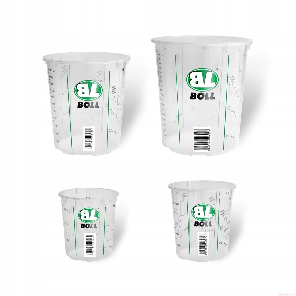 Puszka/kubek o pojemności 2240ml skalowany do 1900ml wykonany z polipropylenu z naniesioną podziałką, znakomicie sprawdza się do odomierzania silikonów, żywic, mas gipsowych, wszelkiego rodzaju substancji płynnych i sypkich. Podziałka umożliwia skalowanie substancji w proporcjach 1:1, 2:1, 3:1, 4:1, 5:1.