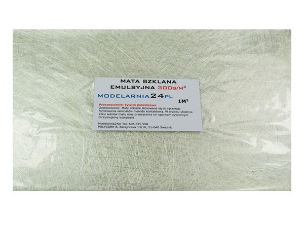 Mata szklana EMU 300 g/m2 typu emulsyjnego ma zastosowanie do wszystkich rodzajów żywic poliestrowych. Przeznaczona do laminowania metodą natryskową lub ręczną poprzez nakładanie żywicy za pomocą pędzla lub wałka. W wyniku ułożenia kilku warstw maty oraz przesycenia ich spoiwem żywicznym otrzymujemy laminat (kompozyt) charakteryzujący się wysoką odpornością mechaniczną przy jednoczesnym zachowaniu niskiej wagi, technikę tą wykorzystuje się również do produkcji wyrobów o dość skomplikowanych kształtach.