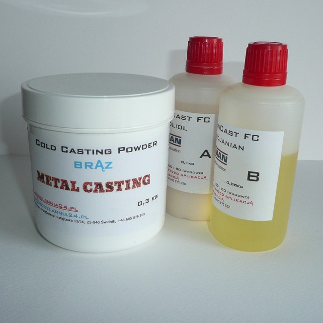 METAL CASTING SYSTEM jest to mieszanina specjalnie modyfikowanego proszku metalicznego i spoiwa żywicznego na bazie żywicy poliuretanowej. Służy do wykonywania wszelkiego rodzaju odlewów imitujących swoim wyglądem metaliczny brąz. Wystarczy odlać masę w temperaturze pokojowej, poczekać do utwardzenia i wypolerować wełną stalową na wysoki połysk.