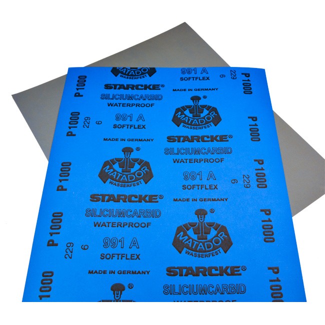 Papier ścierny wodoodporny STARCKE MATADOR P1000 do szlifowania ręcznego na mokro. Znajduje zastosowanie wszędzie tam gdzie wymagana jest najwyższa jakość szlifowanej powierzchni. Zastosowane ostre ziarno z węglika krzemu pozwala na wyjątkowo ostre ścieranie powierzchni, natomiast spoiwo z żywic syntetycznych zapewnia optymalne zabezpieczenie przed wykruszaniem się ziarna.