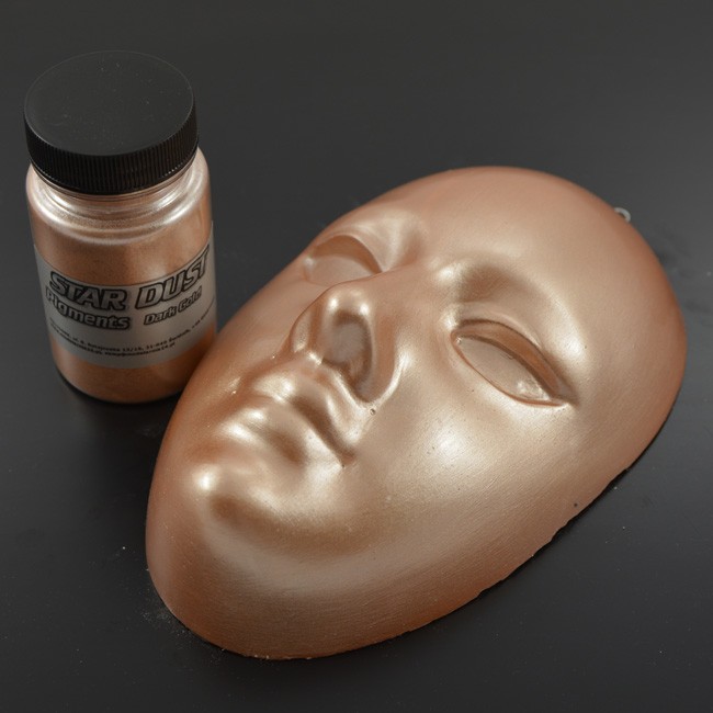 Pigmenty perłowo metaliczne STAR DUST to najwyższej jakości substancje służące do wszystkich technik barwienia zarówno powierzchniowego jak i w masie. Dzięki swoim właściwościom służą jako pigmenty koloryzujące do odlewów żywicznych jak i do nakładania powierzchniowego w połączeniu ze wszystkimi rodzajami żywic, tj. poliuretanowymi, epoksydowymi, poliestrowymi i akrylowymi. Możliwe jest również nakładanie ich na ozdabiane powierzchnie za pomocą pędzla w postaci samego proszku. W wyniku ich zastosowania uzyskujemy powierzchnię odlewu zabarwioną na żądany kolor z dodatkowym perłowym lub metalicznym połyskiem. Uwaga – Zdjęcia mogą odbiegać kolorystycznie od finalnego wyniku wybarwienia ze względu na ustawienia rozdzielczości monitora i naświetlenia.