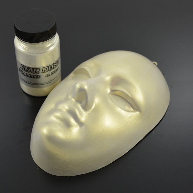 Pigmenty perłowo metaliczne STAR DUST to najwyższej jakości substancje służące do wszystkich technik barwienia zarówno powierzchniowego jak i w masie. Dzięki swoim właściwościom służą jako pigmenty koloryzujące do odlewów żywicznych jak i do nakładania powierzchniowego w połączeniu ze wszystkimi rodzajami żywic, tj. poliuretanowymi, epoksydowymi, poliestrowymi i akrylowymi. Możliwe jest również nakładanie ich na ozdabiane powierzchnie za pomocą pędzla w postaci samego proszku. W wyniku ich zastosowania uzyskujemy powierzchnię odlewu zabarwioną na żądany kolor z dodatkowym perłowym lub metalicznym połyskiem.  Uwaga – Zdjęcia mogą odbiegać kolorystycznie od finalnego wyniku wybarwienia ze względu na ustawienia rozdzielczości monitora i naświetlenia.