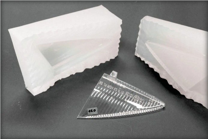 4. Odpowietrzoną masę należy wlać do formy silikonowej, wcześniej forma silikonowa powinna zostać podgrzana do 70°C, przestrzegać czasów mieszania i wstępnego wiązania podanych w TDS aby uniknąć przedwczesnego związania jeszcze przed wlaniem do formy silikonowej. Przy skomplikowanych kształtach odlewów zaleca się aby forma posiadała tzw. odpowietrzenia.