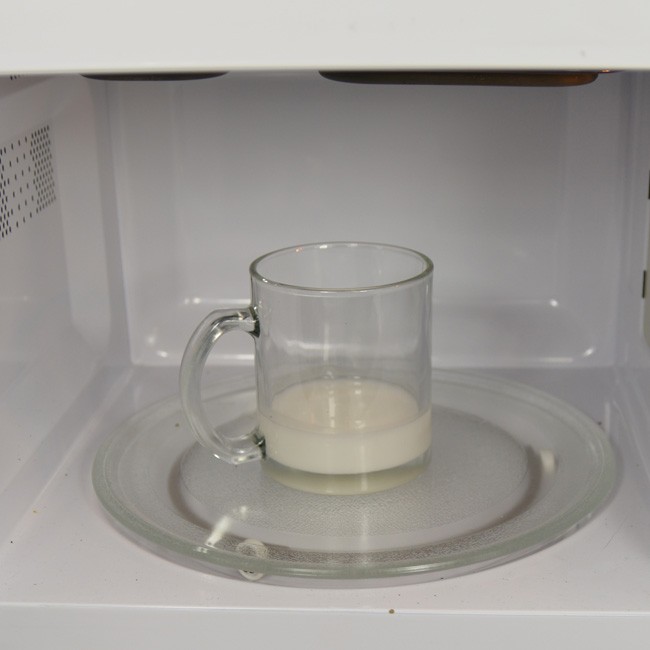 2. Zabarwiony Soft Plastic Clear wlewamy do naczynia żaroodpornego i umieszczamy w kuchence mikrofalowej, następnie poddajemy kilku cyklom podgrzewania, za każdym razem wyjmując naczynko i delikatnie mieszając jego zawartość. Przykładowy cykl uplastycznienia dla ilości wystarczającej do wykonania typowej przynęty to: 30s + 30s + 20s + 20s. Nie miej jednak jest to jedynie przykład, należy czas i ilość cykli dobrać do ilości podgrzewanego tworzywa oraz mocy posiadanej kuchenki mikrofalowej. W przypadku podgrzewania bez barwników oznaką prawidłowego podgrzania jest uzyskanie klarownej, przezroczystej bardzo płynnej cieczy. Jeżeli rozgrzany Soft Plastic Clear zmieni swój kolor na lekko żółty lub brązowy oznacza to jedynie, iż został przegrzany. Powodem najczęściej są zbyt długie cykle podgrzewania, za wysoka moc mikrofali (ustawienia na max. 50% mocy) lub słabe mieszanie podczas przerw pomiędzy podgrzewaniem. W przypadku zbyt intensywnego procesu podgrzewania możliwe jest również pojawienie się w cieczy bąbelek powietrza. W celu ich usunięcia należy pozostawić na chwilę kubek z rozgrzanym płynem pozwalając im na swobodną ucieczkę.