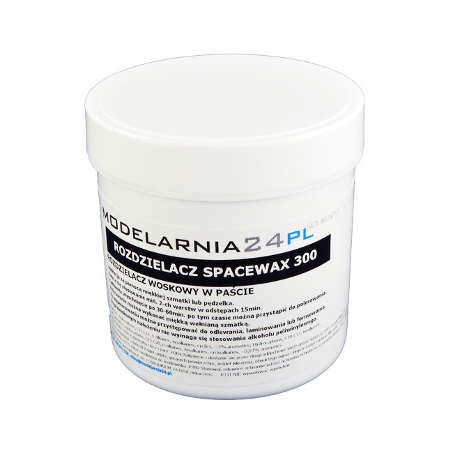Spacewax 300 – środek na bazie wosku stałego w postaci pasty. Posiada bardzo dobre własności ntyadhezyjne, jest łatwy do polerowania i bardzo wydajny. Często stosuje się go także jako warstwę antyadhezyjną modelu przy wykonaniu formy. Zakres stosowania: od temperatury pokojowej do 140, zalecany do wszystkich możliwych wariantów formowania: