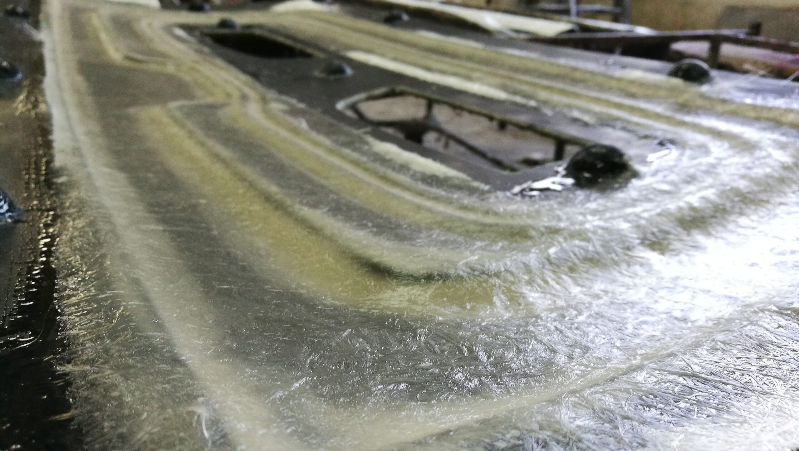 4. Po wylaniu żywica ma tendencję do samo poziomowania się na powierzchni nie mniej jednak nie jednokrotnie niezbędne jest użycie plastikowej szpatułki w celu równomiernego rozprowadzenia. Po pokryciu całej powierzchni czekamy chwilkę w celu ostatecznego samo poziomowania się powłoki żywicznej. Bardzo ważnym aspektem jest wręcz idealne wypoziomowanie elementu na który nanosimy kompozycję żywiczną, nawet minimalne uchybienia w tym obszarze będą skutkować tym, że żywica będzie nam spływać w kierunku spadku także to jest bardzo ważna czynność przed przystąpieniem do wylewania.